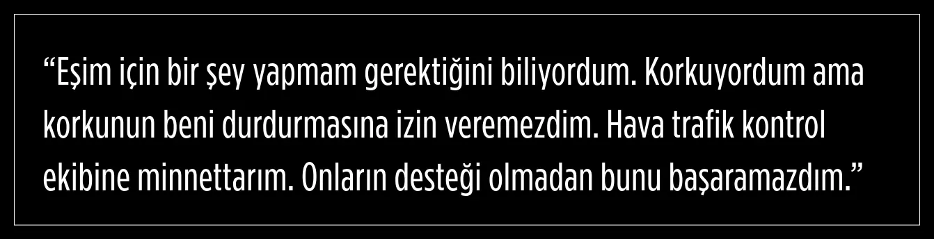 Pilotun kalp krizi geçirdiği uçuşta, 69 yaşındaki eşi uçağı başarılı bir şekilde indirerek bir mucizeye imza attı.