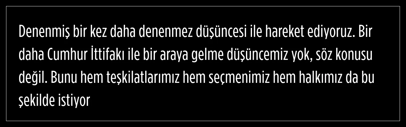 "Biz yapılacak olan genel seçimde milletvekilliği seçiminde ittifak düşünebiliriz"