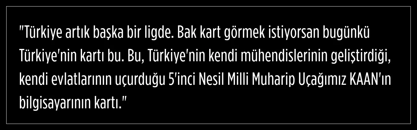 Kacır, Türkiye’nin teknoloji ve inovasyon alanında geldiği noktayı örneklerle anlattı. KAAN'ın bilgisayar kartının kilogram değerinin 70.000 dolar olduğunu belirten Kacır, bu kartın stratejik öneminin çok daha büyük olduğunu ifade etti. Kacır, Türkiye’nin söz konusu kartı tasarlayıp geliştirebilen ve üzerinde yerli ve milli işletim sistemini çalıştırabilen beş ülkeden biri olduğunu hatırlattı.