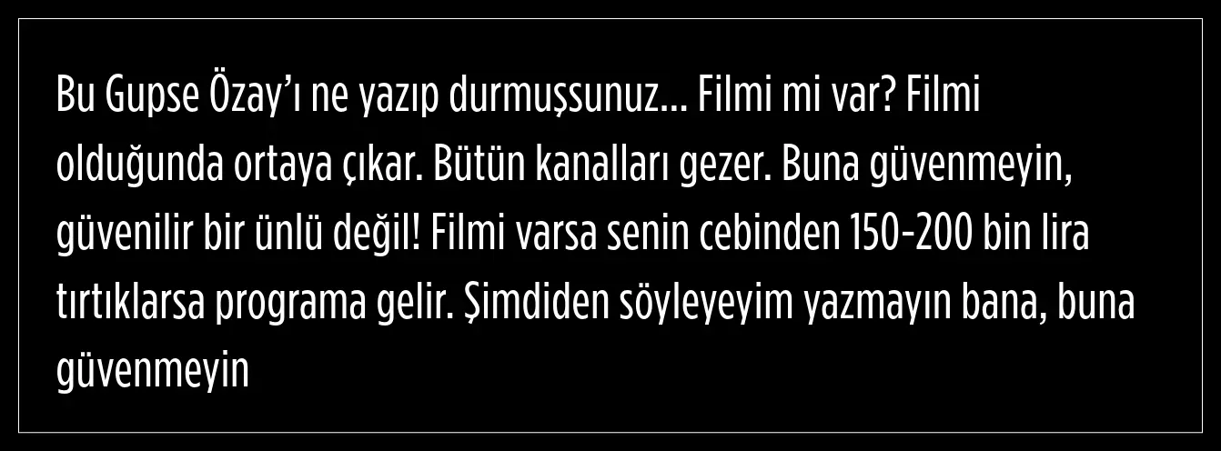 "gupse Özay, güvenilir bir ünlü değil!"