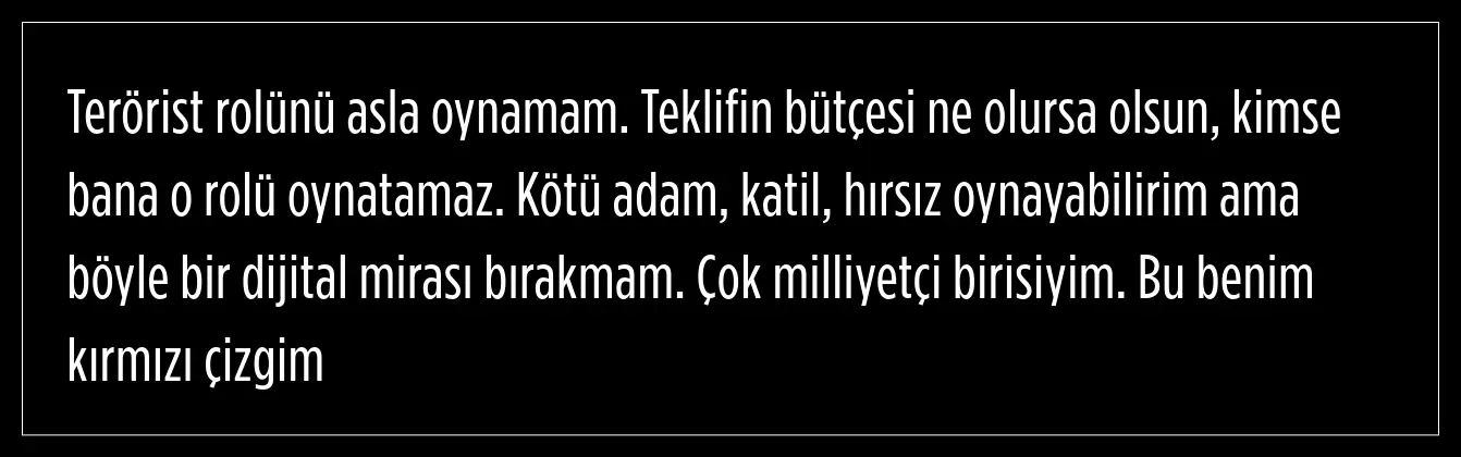 Oyuncu, asla oynamayacağı role ilişkin de bir açıklama yaptı. Erdim, şunları söyledi: