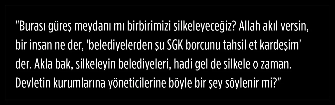 Erdoğan, daha önce yaptığı bir açıklamada, SGK (Sosyal Güvenlik Kurumu) borçlusu belediyelerin daha kararlı bir biçimde "silkelenmesi" yönünde çağrıda bulunmuştu. Bunun üzerine İmamoğlu, şu ifadeleri kullanmıştı: