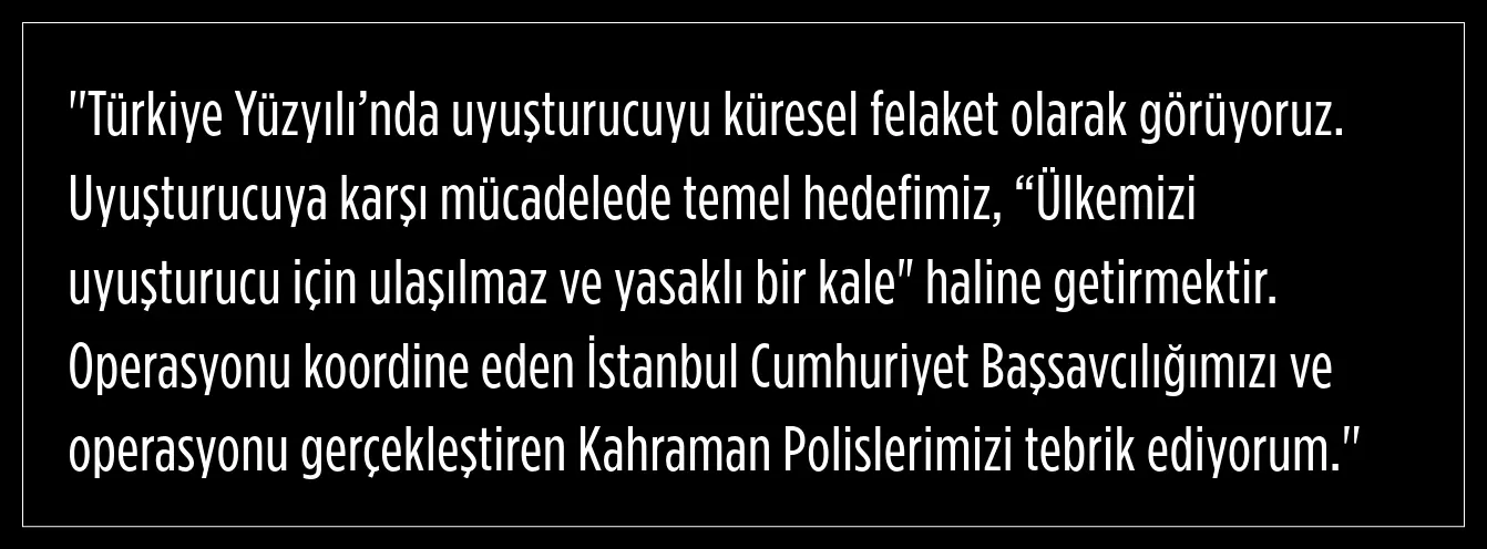 İstanbul Cumhuriyet Başsavcılığı ile Emniyet Genel Müdürlüğü Narkotik Suçlarla Mücadele Başkanlığı koordinasyonunda; İstanbul İl Emniyet Müdürlüğü Narkotik Suçlarla Mücadele Şube Müdürlüğünce yapılan çalışmalar sonucu; Beylikdüzü ilçesinde düzenlenen operasyonda; 106 kg sıvı Metamfetamin, 34 kg kile emdirilmiş katı Metamfetamin, 5 kg kristal halde metamfetamin, 7 kg ara kimyasal madde ve 1 adet hassas terazi ele geçirildi.