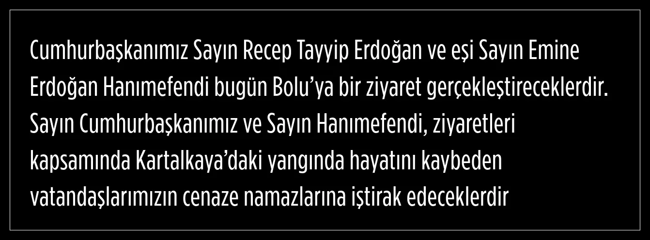 Altun, Cumhurbaşkanı Erdoğan'ın eşi Emine Erdoğan ile Bolu'ya bir ziyaret gerçekleştireceğini ve yangında hayatını kaybedenlerin cenaze törenine katılacağını söyledi. Fahrettin Altun, şu açıklamayı yaptı:
