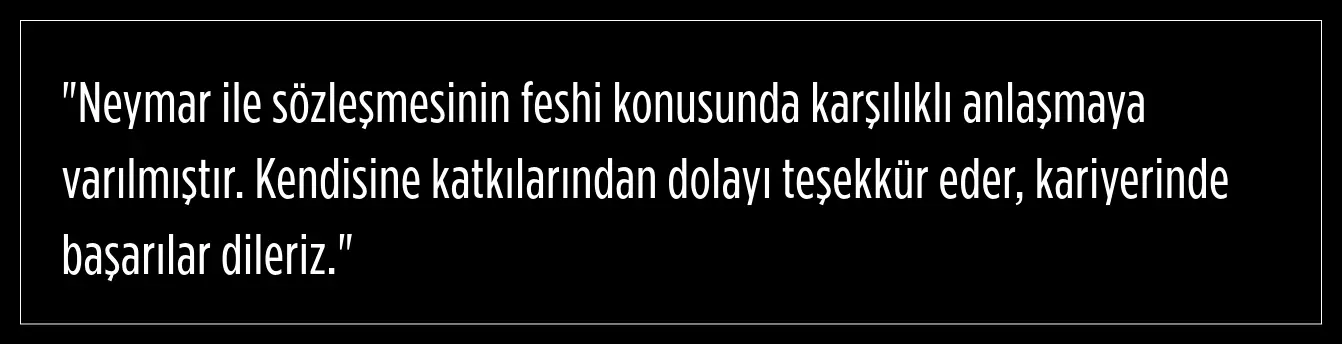 Al Hilal, Brezilyalı futbolcu Neymar ile sözleşmesini karşılıklı olarak feshetti. Yıldız oyuncunun eski kulübü Santos’a döneceği öne sürülüyor.