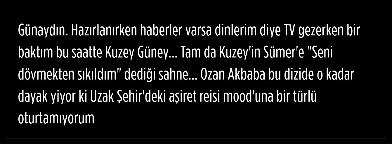 Uzak Şehir dizisinde Cihan karakterine hayat veren oyuncu Ozan Akbaba, dayak itirafıyla gündeme geldi. Akbaba, ''Sıla'nın klibinde de dayak yedim'' dedi.