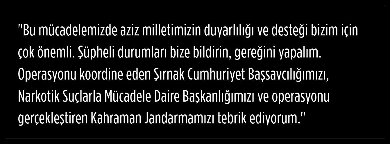 Ayrıca 2024 Yılı içerisinde (1 Ocak-31 Aralık 2024) Jandarma Genel Komutanlığı tarafından Uyuşturucuya yönelik düzenlenen operasyonlarda toplam: 4 Ton 45 Kg Metamfetamin ele geçirildi.
