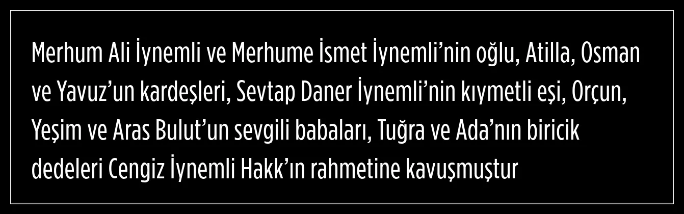 Yaklaşık iki yıldır tedavi gören Cengiz İynemli, 76 yaşında hayatını kaybetti.