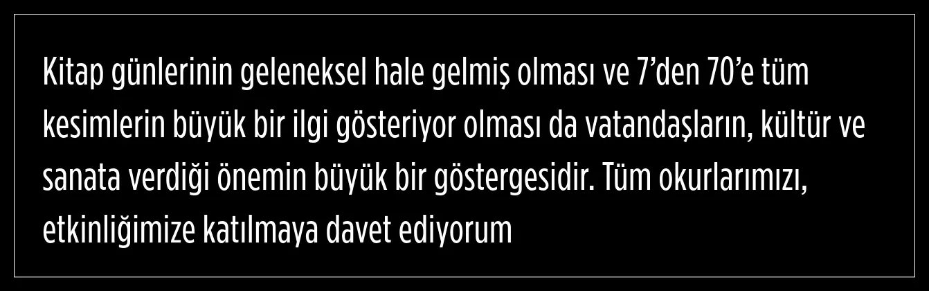 Her yaşa hitap eden kitap günlerine ilginin her geçen gün artarak devam ettiğini ifade eden Çetin, kitapseverlerin ilgiyle takip ettiği, içeriği dopdolu çok güzel imza ve söyleşi programlarının olduğunu söyledi.