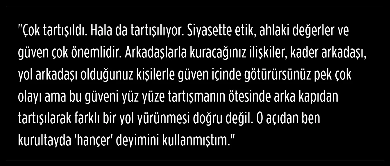Kurultayın ardından yaptığı "Sırtımdan hançerlendim." şeklindeki açıklamasının sorulması üzerine Kılıçdaroğlu, şu ifadeleri kullanmıştı: