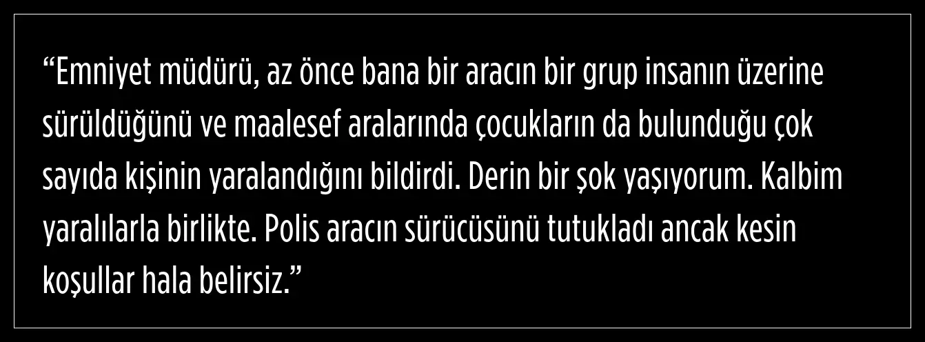 Olayın ardından polis ekipleri, bölgede geniş güvenlik önlemleri aldı. Acil durum ekipleri, yaralılara ilk müdahaleyi yaparken, hastanelere sevk edilen bazı kişilerin durumlarının ciddi olduğu bildirildi. Yetkililer, olayın nedenine dair kesin bilgilerin henüz belirlenmediğini ve sürücünün sorguya alındığını açıkladı.