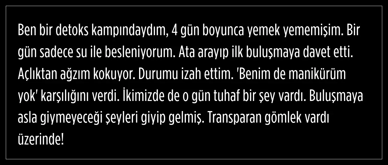 "Buluşmaya asla giymeyeceği şeyleri giyip gelmiş"