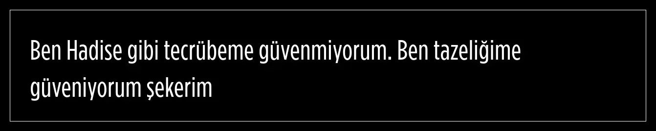 Şahin'in sözleri sonrasında Hadise ise, buna katılmadığını ifade ederek, "Tazelik ve tecrübeyi bir araya getiremezsin ikisi çok farklı şeyler" dedi.