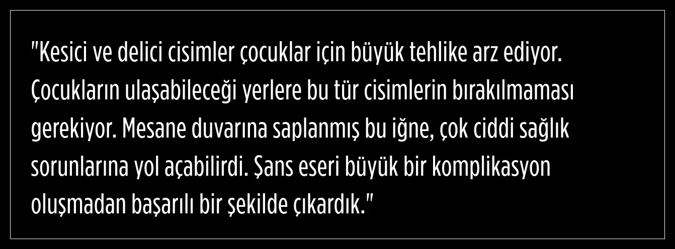 Operasyonu gerçekleştiren Op. Dr. Tahsin Onat Kamçı, çocukların yutabileceği yabancı cisimlerin büyük risk taşıdığını belirterek, aileleri şu sözlerle uyardı: