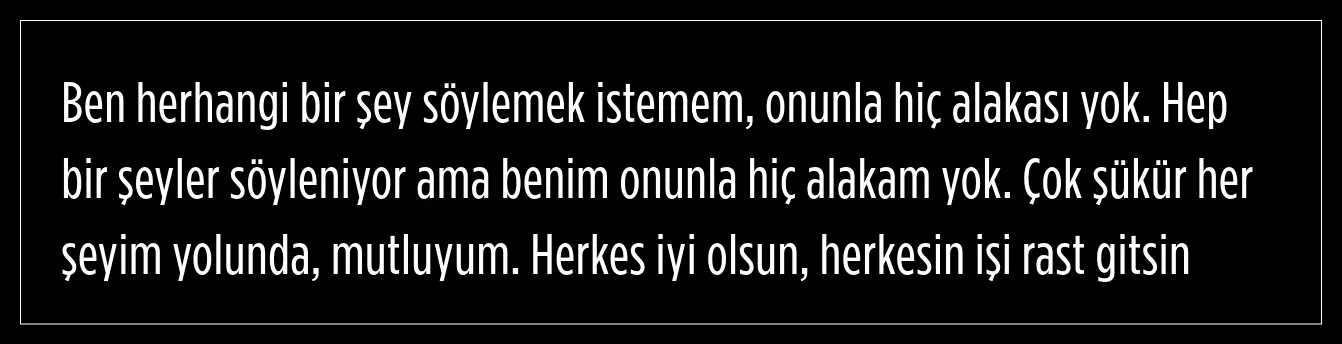 "onunla hiç alakam yok. Herkes iyi olsun"