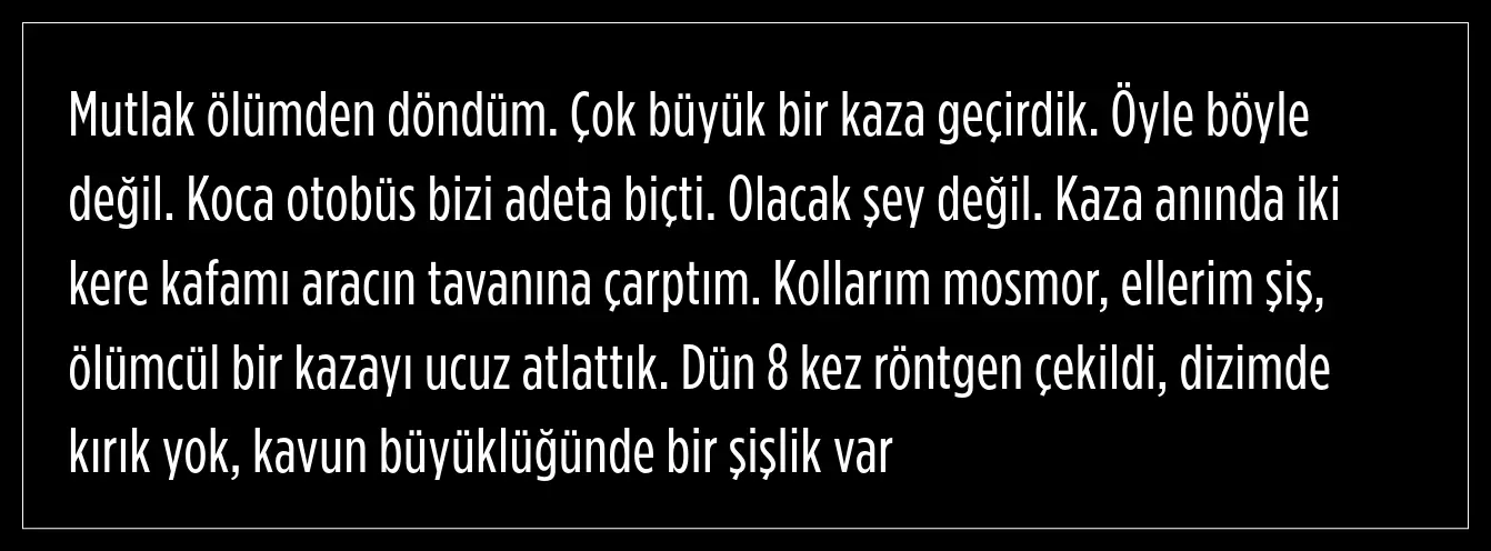"ölümcül bir kazayı ucuz atlattık" diyen Müjde Ar, şu ifadeleri kullandı: