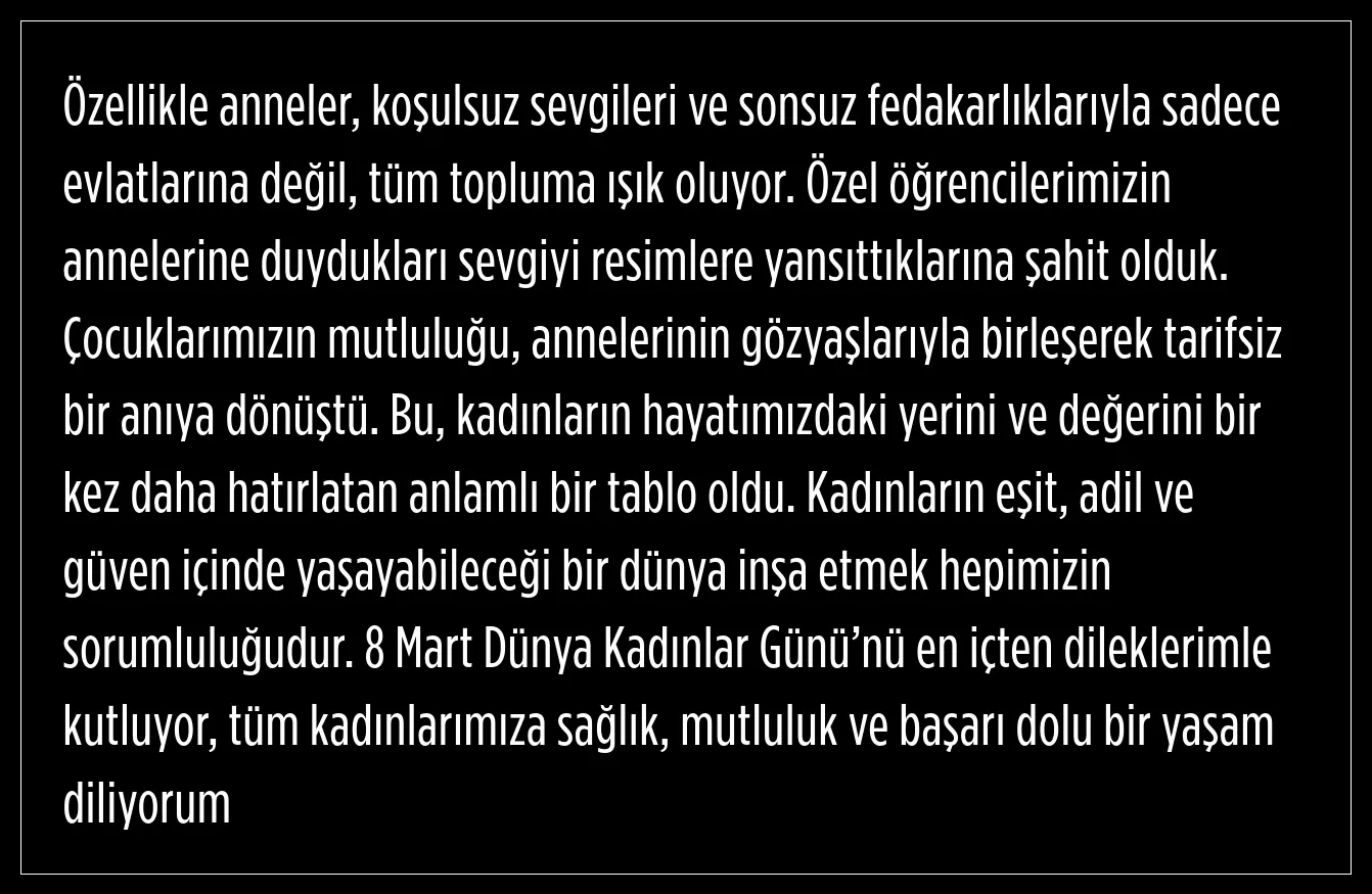 Umutlu Yaşam Uygulama Merkezi'nde (UYUM) eğitim gören özel öğrenciler, anneleri için anlamlı bir sürpriz hazırladı. Gölbaşı Belediye Başkanı Yakup Odabaşı’nın da katıldığı etkinlikte öğrenciler annelerinin portrelerini boyayarak onları unutulmaz bir armağana dönüştürdü.