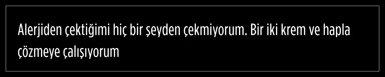 "Alerjiden çektiğimi hiç bir şeyden çekmiyorum"