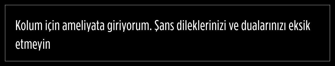 Kolu için ameliyata girdiğini söyleyen Civelek, hayranlarından şans ve dua istedi.