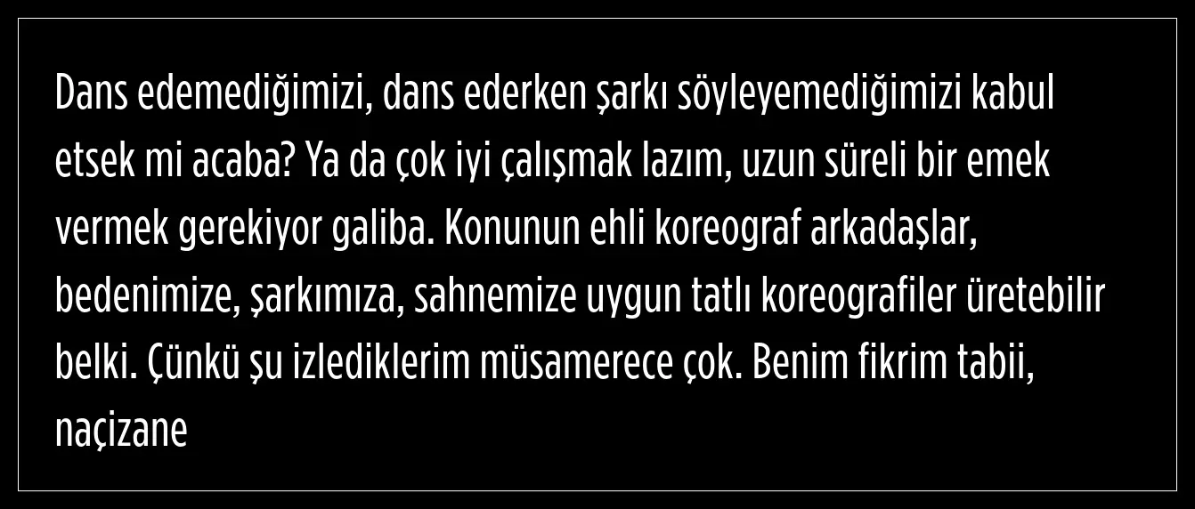 Derici ve Hadise'nin dans ederken şarkı söyleyemediği imasında bulunan Ceylan Ertem, "Kabul etsek mi acaba?" dedi.