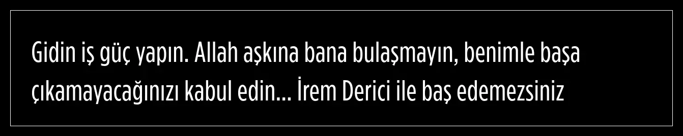 "Gündeme gelmek isteyen ya bana ya Hadise'ye sarar" diyen İrem Derici, şunları söyledi: