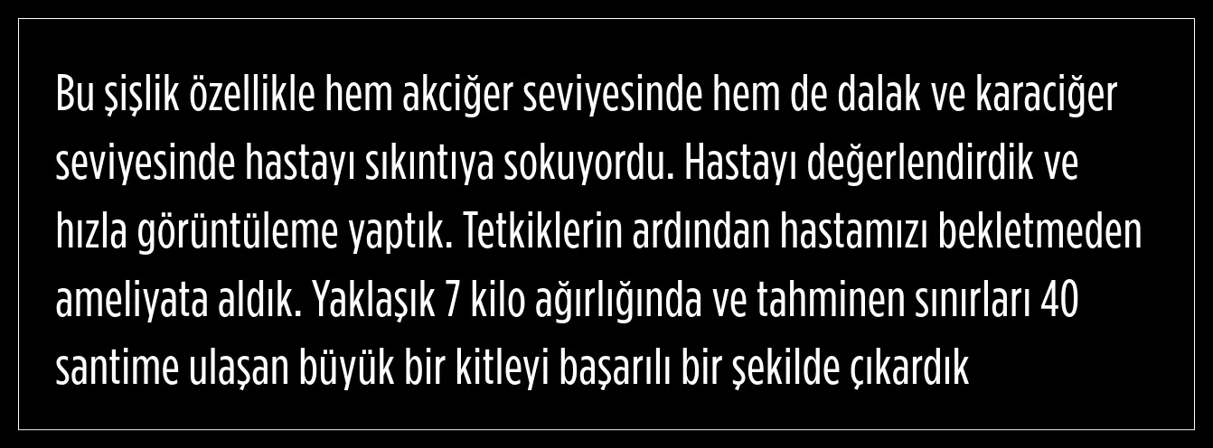 Doç. Dr. Engin Yıldırım ve ekibi tarafından gerçekleştirilen 3 saatlik operasyon sonucunda dev kitle başarılı bir şekilde çıkarıldı.