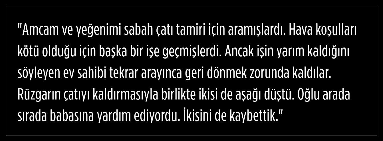 İzmir’de çatı tamiri yaparken şiddetli rüzgar nedeniyle 10 metre yükseklikten düşen Muharrem Barışık (43) ve oğlu Eren Barışık (17), hayatını kaybetti.