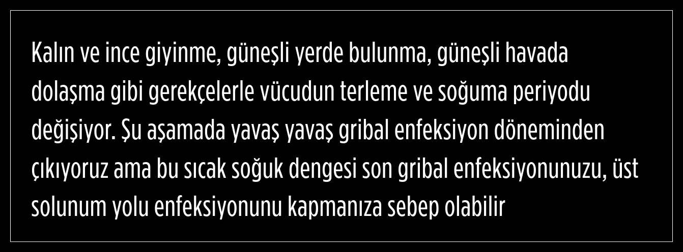 Şener, ani sıcaklık değişimlerinde doğru kıyafet seçiminin önemine dikkat çekerek, katmanlı giyinmenin en doğru tercih olduğunu belirtti. Bu sayede, hava ısındıkça bir kat çıkararak vücut ısısının dengede tutulabileceğini ifade etti.