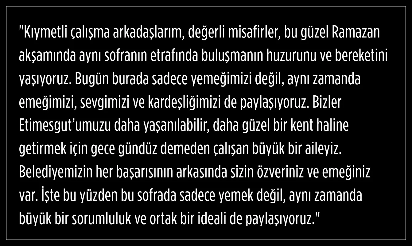 İftarın ardından konuşma yapan Beşikcioğlu, belediye çalışanlarına ve ailelerine teşekkür ederek şunları söyledi: