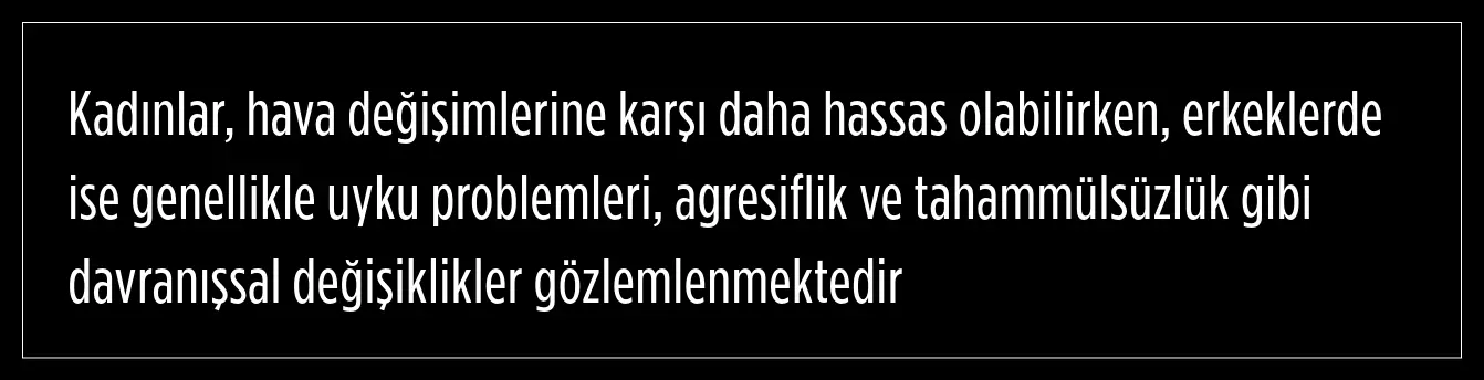 Ani ısının ve iklim değişikliğinin psikolojik etkisi olduğunu belirten Özkaya, bu değişimlerin; anksiyete, endişe, uyku sorunları, kas ağrıları, yeme bozuklukları gibi fiziksel ve duygusal belirtilere yol açabildiğini belirtti.