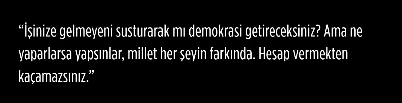 “Sözde hak, hukuk, adaletten bahsedenler, yüzlerce kamera arkası emekçisinin ekmeğiyle oynamaktan çekinmiyor! Oyuncular, set işçileri, senaristler, ışıkçılar, kostümcüler… Onların emeği, geçimi ne olacak? Sanatçıyı ve emekçiyi cezalandırmak siyaset yapmak mı?”