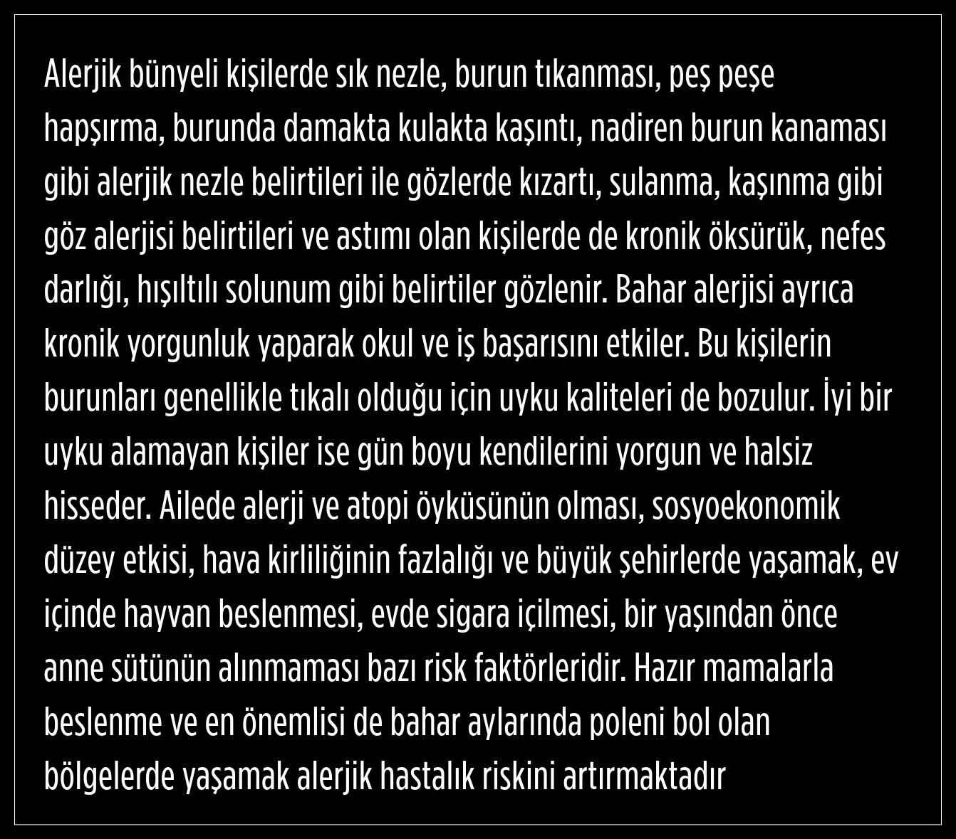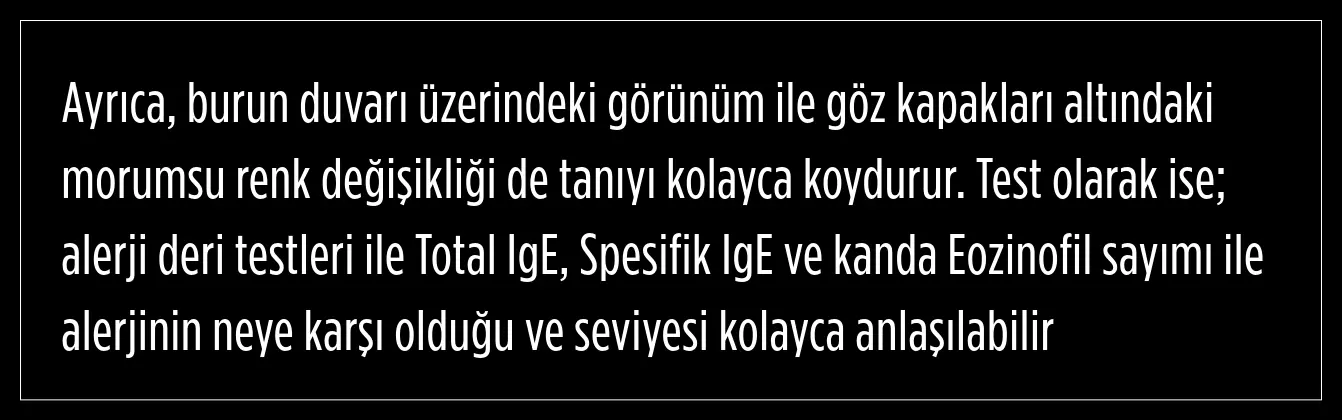 Doktorlar tarafından yapılan muayene ile burun içi mukozanın solukluğu, kızarıklığı ve beyaz şeffaf akıntı ile kolayca tanı konduğunu söyleyen Öztürk, şöyle devam etti: