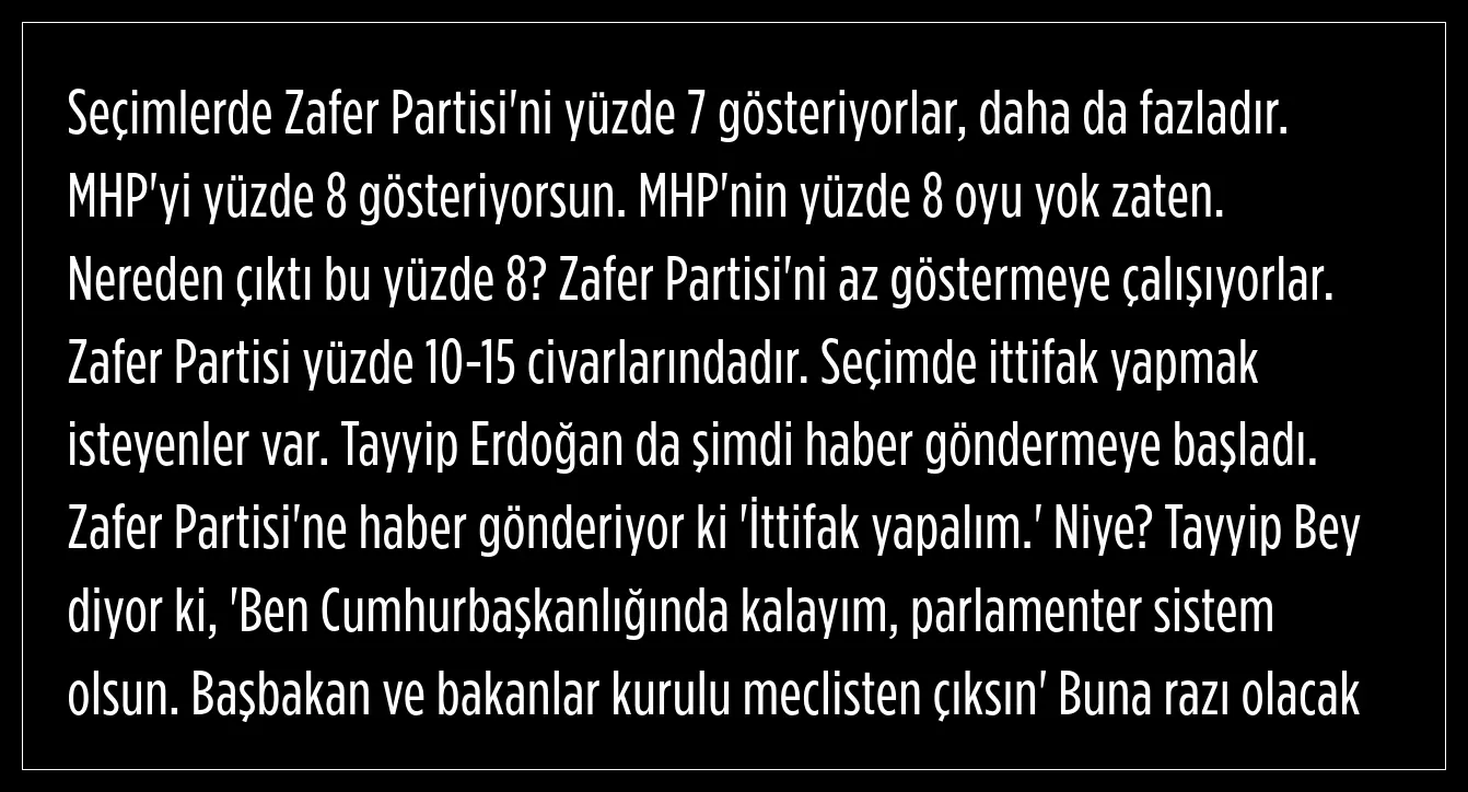 Zafer Partili Gürses'ten ittifak iddiası: Erdoğan, haber gönderdi!