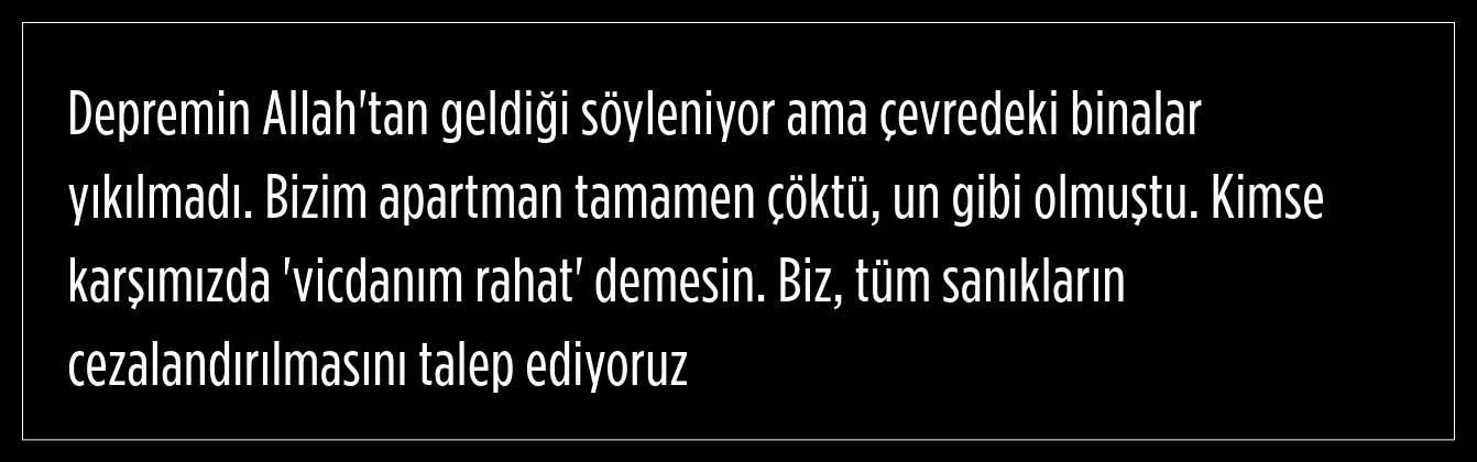 Depremde 13 yaşındaki çocuğunu kaybeden Gülistan Çiçek ise, şu ifadeleri kullandı:
