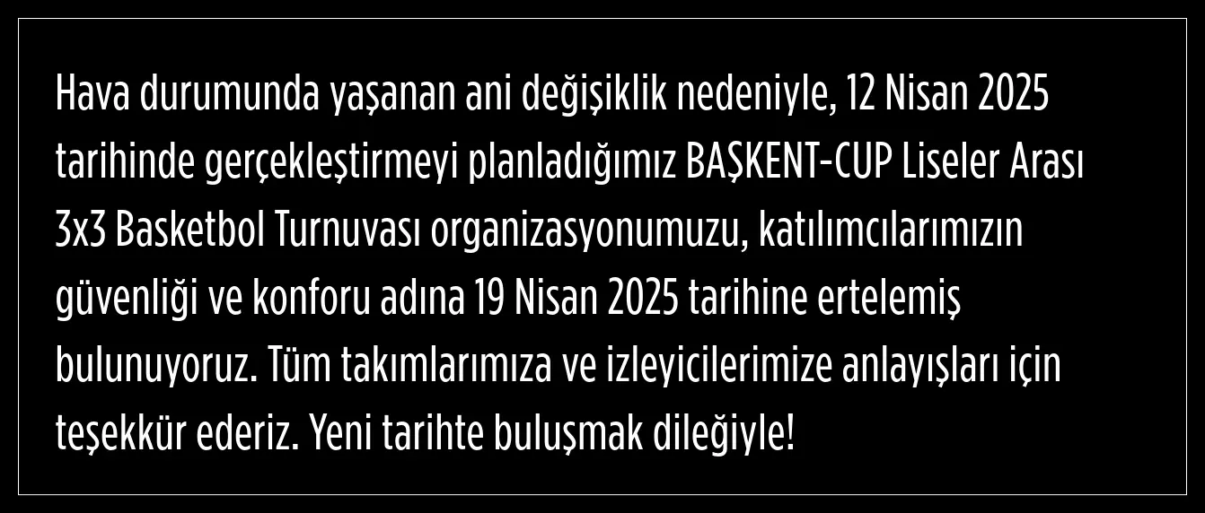 BAŞKENT-CUP 3x3 Liselerarası Basketbol Turnuvası ile ilgili ABB'den önemli bir duyuru yapıldı.