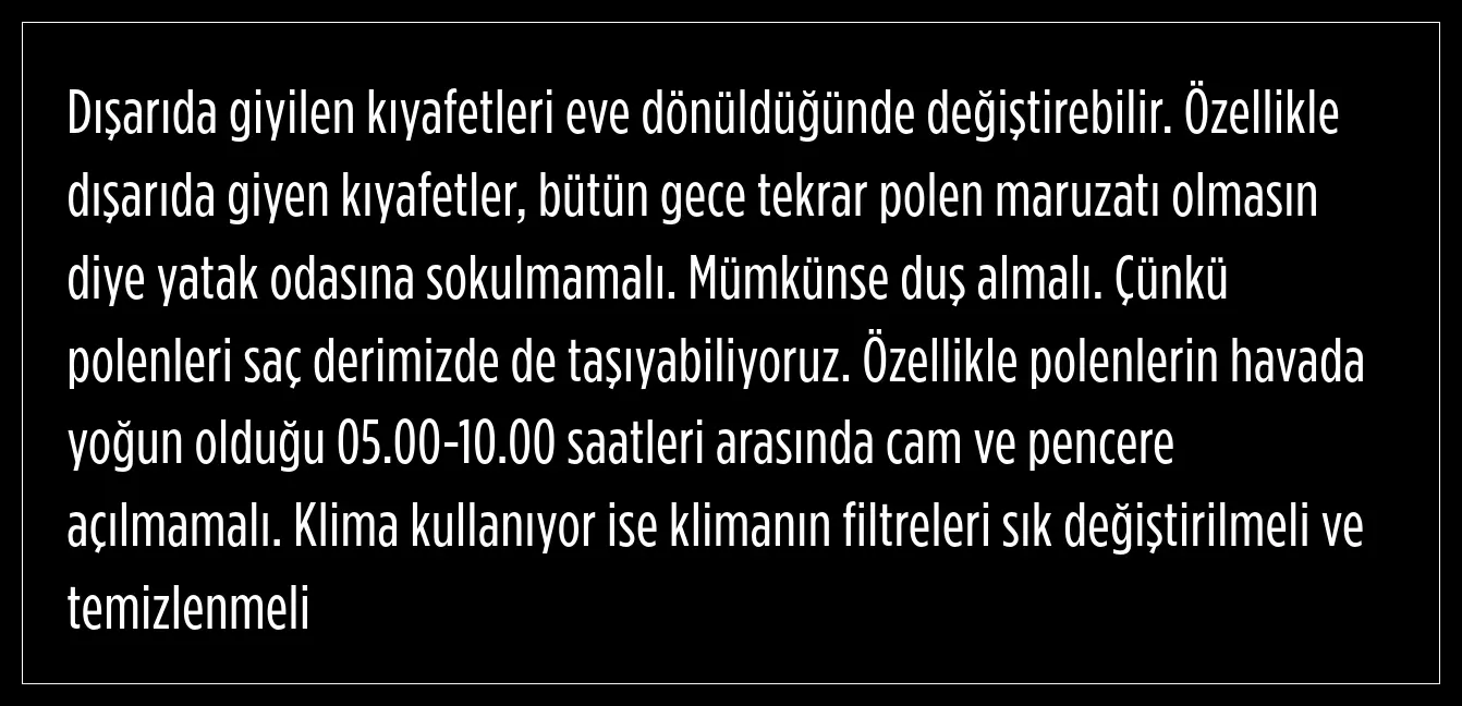 "POLEN ALERJİSİ OLANLAR DIŞARI ÇIKMAYIN"