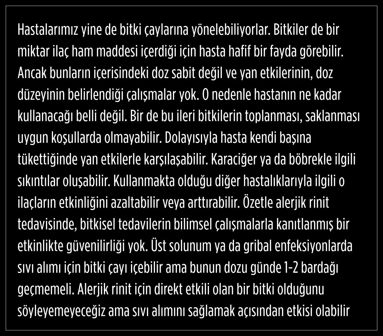 Alerjik rinitin tedavisinden bahseden ve çok kolay olduğunu aktaran Prof. Dr. Papatya Değirmenci, ilaç tedavisi ya da alerjen immünoterapi uygulandığını söyledi. Değirmenci, şöyle konuştu: