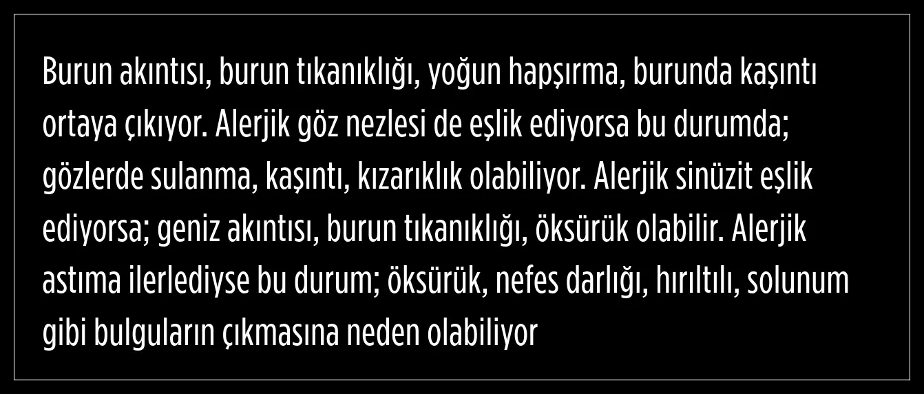Halk arasında "saman nezlesi" olarak bilinen alerjik rinitin, bu mevsimde en yaygın görülen rahatsızlıklardan biri olduğu belirtilen Prof. Dr. Değirmenci, en sık karşılaşılan alerjenlerin; küf mantarları, evcil hayvanlar, polenler ve ev tozu akarlarından kaynaklandığını söyledi.