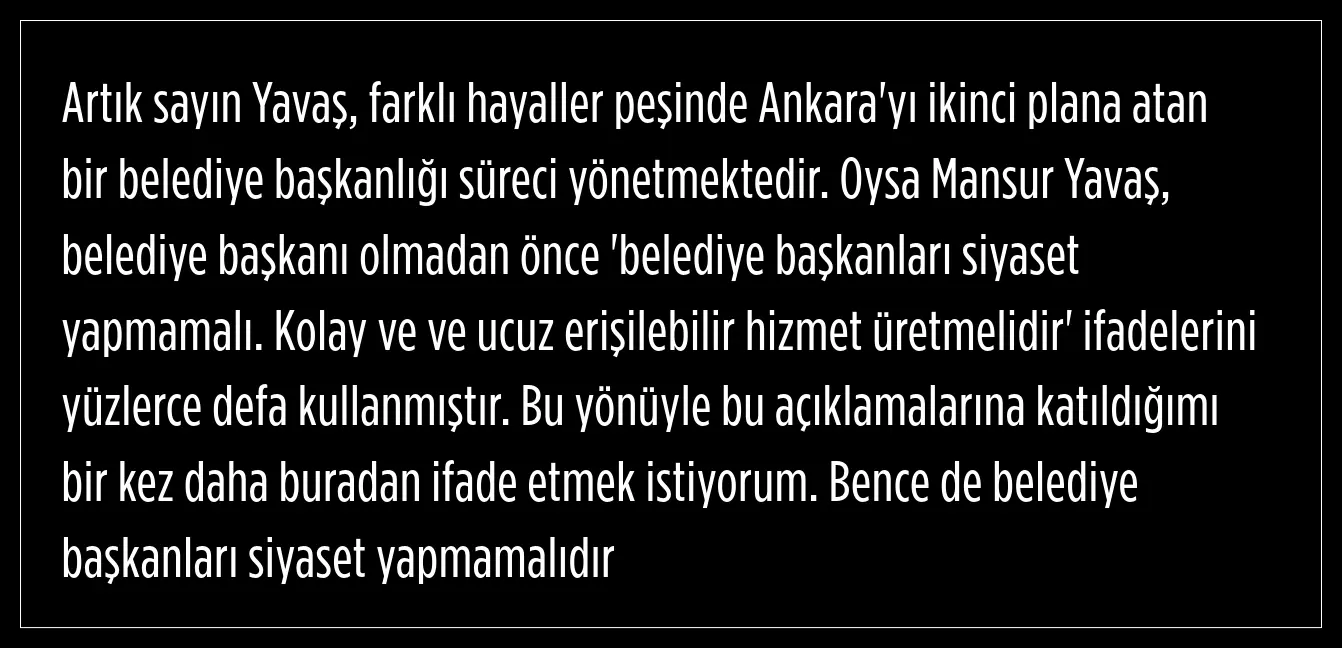 "Yavaş, farklı hayaller peşinde Ankara'yı ikinci plana atan bir belediye başkanlığı süreci yönetmektedir"
