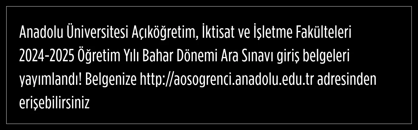 Anadolu Üniversitesi Açıköğretim Fakültesi (AÖF) 2024-2025 öğretim yılı bahar dönemi ara sınavları, 19-20 Nisan 2025 tarihlerinde gerçekleştirilecek. Yüz binlerce öğrencinin katılacağı sınavlar, hafta sonu iki gün boyunca uygulanacak.