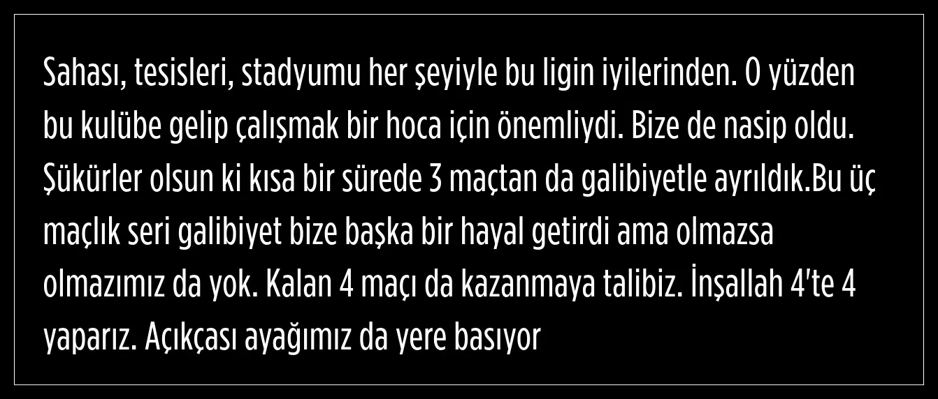 "Kazandığımız puanlar bizi nereye götürecek, 4 maç sonra göreceğiz" diyen teknik direktör, şu ifadeleri kullandı: