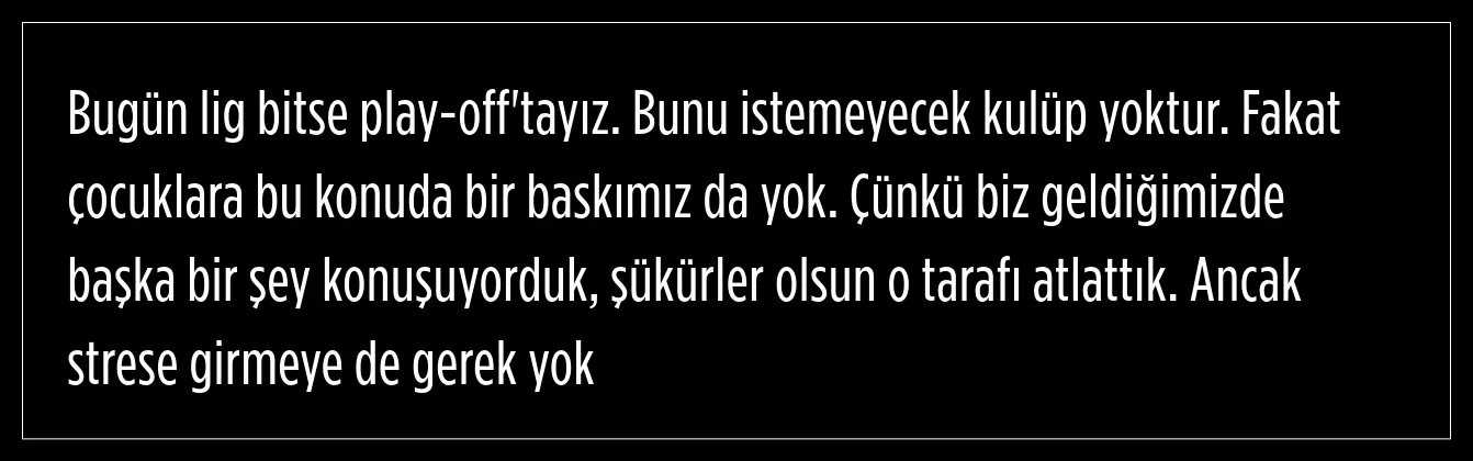 Kalan 4 maçı kazanmak istediklerini ifade eden Keçiörengücü Teknik Direktörü Sedat Ağçay, play-off'ta mücadele etmek istediklerini söyledi.