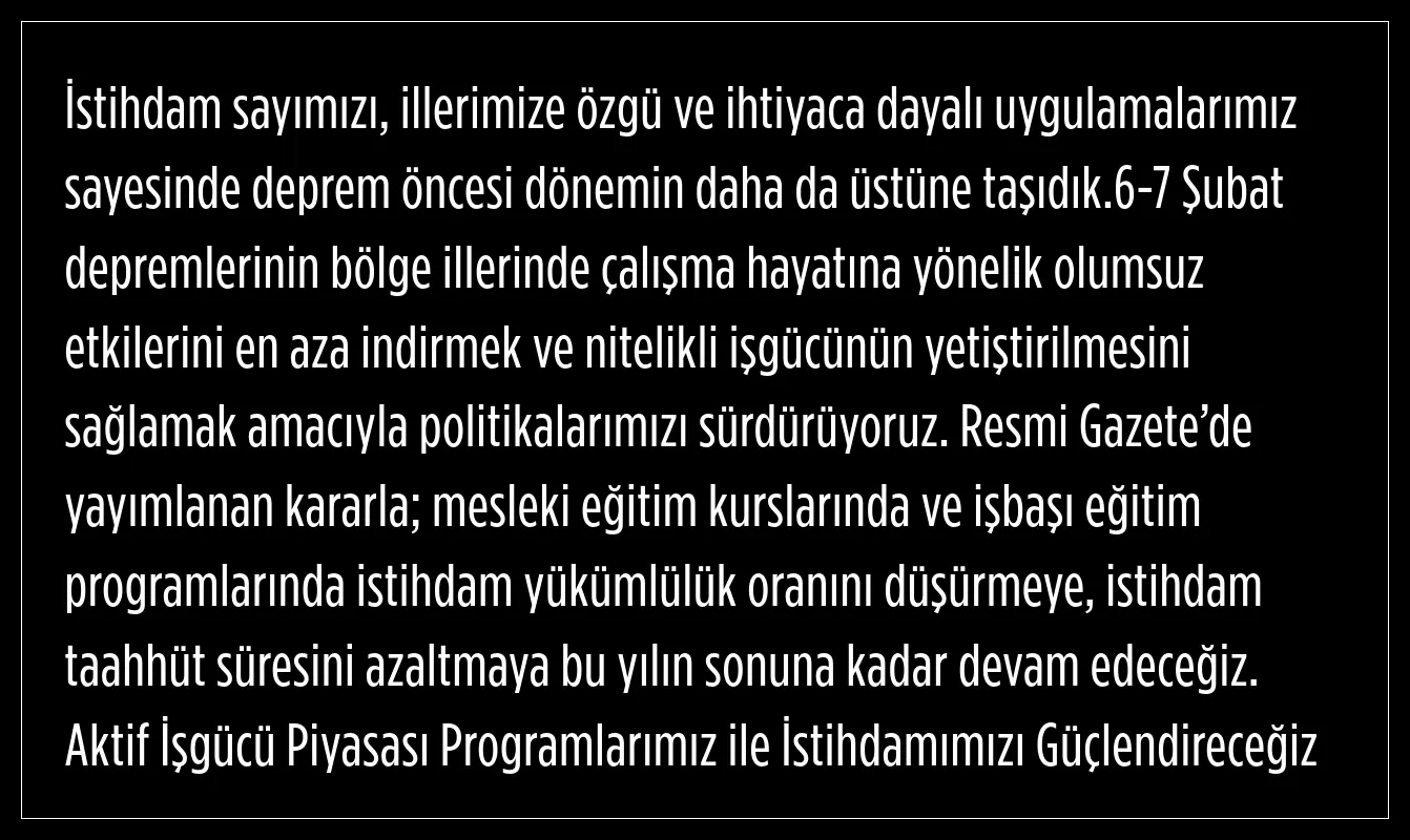 "İstihdam sayımızı deprem öncesi dönemin daha da üstüne taşıdık"