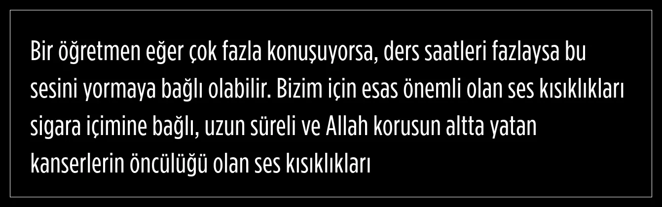 Çobanoğlu, bu nedenden dolayı 3 haftadan uzun süren ses kısıklıklarından mutlaka hastaneye başvurulması gerektiğini belirtti.