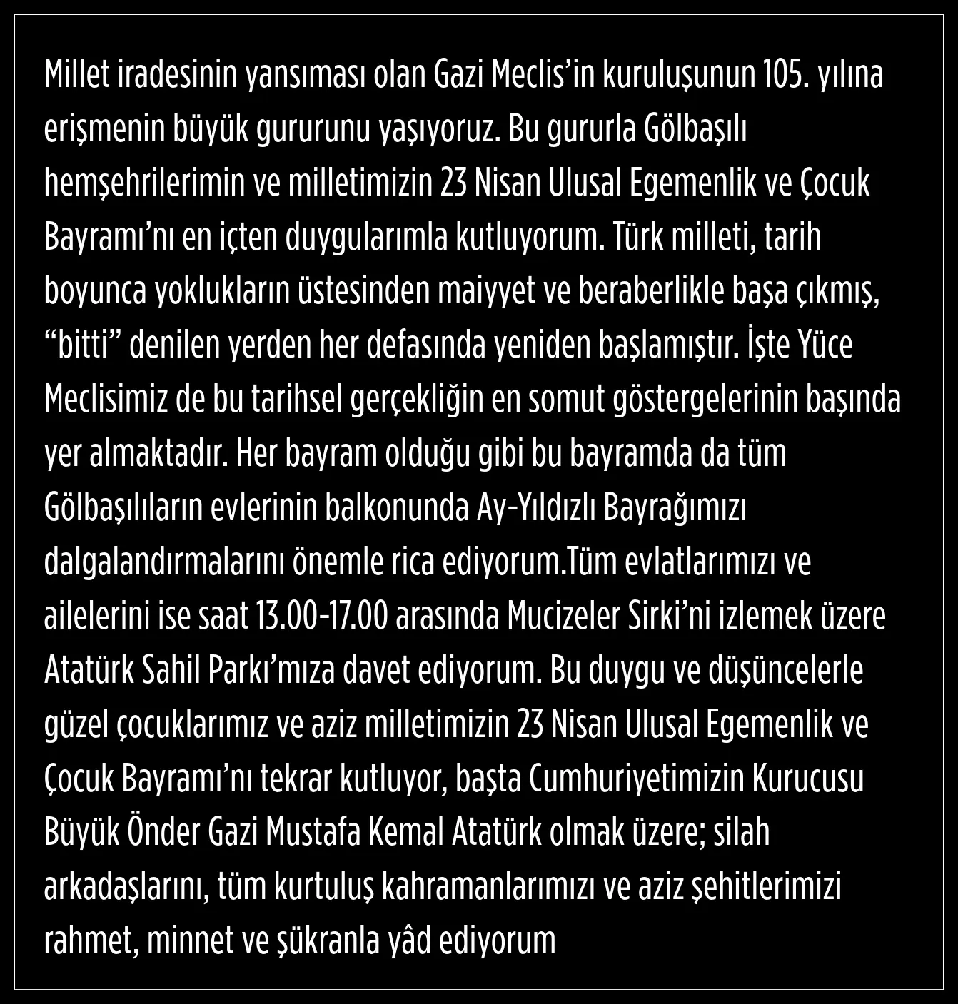 23 Nisan mesajı