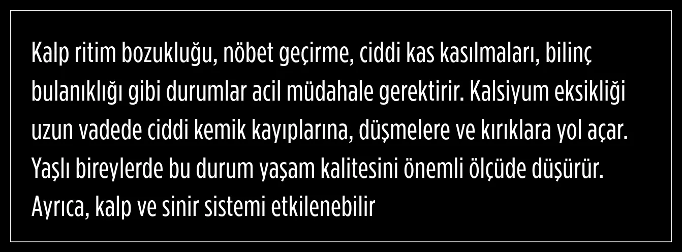 Vücutta kalsiyumun önemine dikkat çeken Doç. Dr. Merve Güner, Kalsiyum seviyesinin çok düşmesi durumunda hayati riskin ortaya çıkabildiğini söyledi.