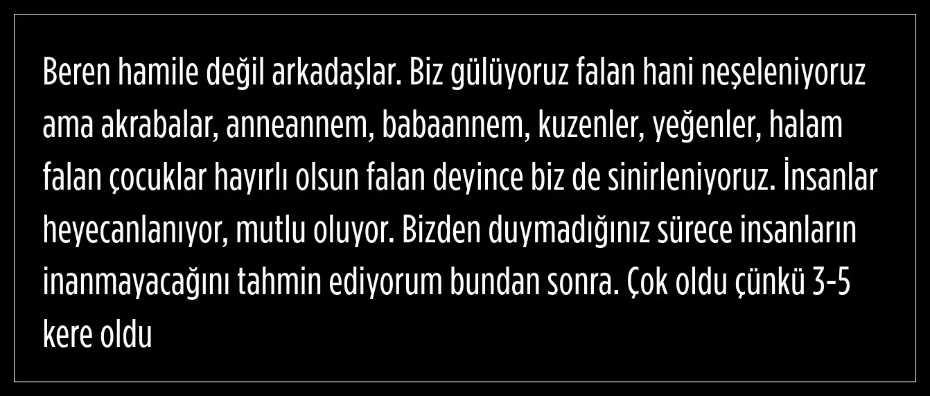 Eşinin hamile olmadığını ifade eden Kenan Doğulu ise, çıkan haberler sonrasında yakınlarının kendilerini hayırlı olsun diye aramaları üzerine sinirlendiklerini söyledi.