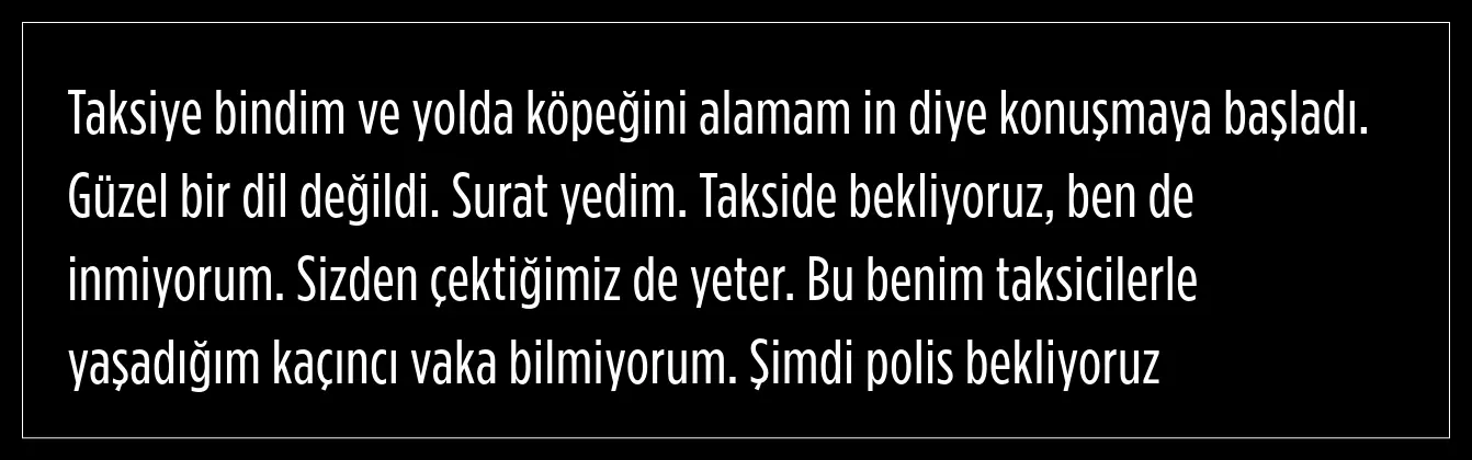 Taksiye köpeği ile binmek isteyen Aleyna Kalaycıoğlu ret cevabını alınca, taksi şoförü ve Kalaycıoğlu arasında tartışma çıktı. Olay karakolda bitti.