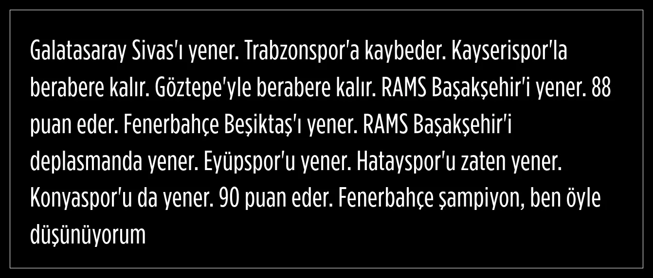 "90 puan eder. Fenerbahçe şampiyon olur"