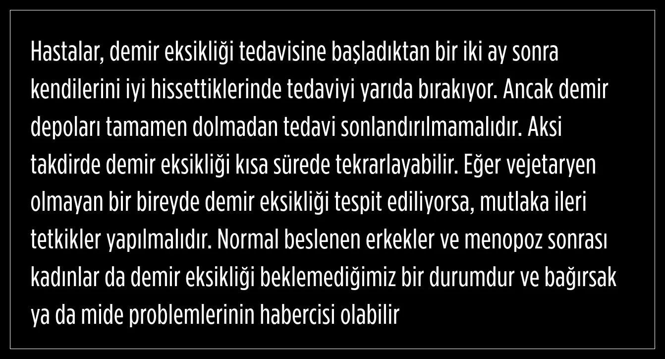 Demir eksiliğinin yaygın bir sağlık sorunu olduğunu ve birçok hastalığa sebep olduğunu ifade eden Dr. Demir, tedavi yöntemleriyle ilgili bilinmesi gerekenlerden bahsetti.